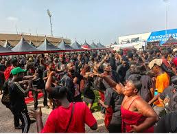 As dawn broke, the sprawling Baba Yara Stadium was transformed into a vibrant tribute ground. Colorful stalls lined the entrance routes, with vendors selling memorabilia such as T-shirts, caps, and programmes commemorating Daddy Lumba’s impact on Ghanaian and high life culture.